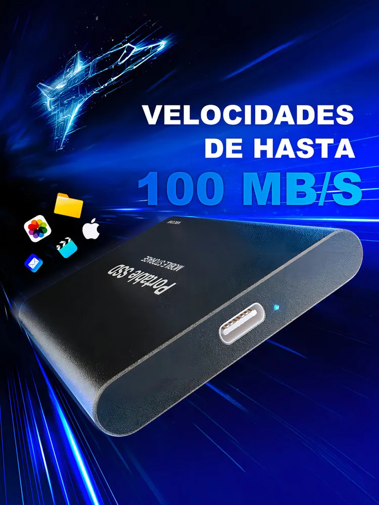 Almacena, transfiere y accede a tus archivos a velocidades ultrarrápidas con el SSD Externo Portátil 4TB, diseñado para profesionales, gamers y usuarios exigentes que buscan rendimiento, portabilidad y seguridad. Con tecnología USB 3.2 Gen 2 (Type-C), este disco de estado sólido ofrece velocidades de lectura/escritura hasta 2 veces más rápidas que un HDD tradicional, garantizando flujo de trabajo sin esperas.