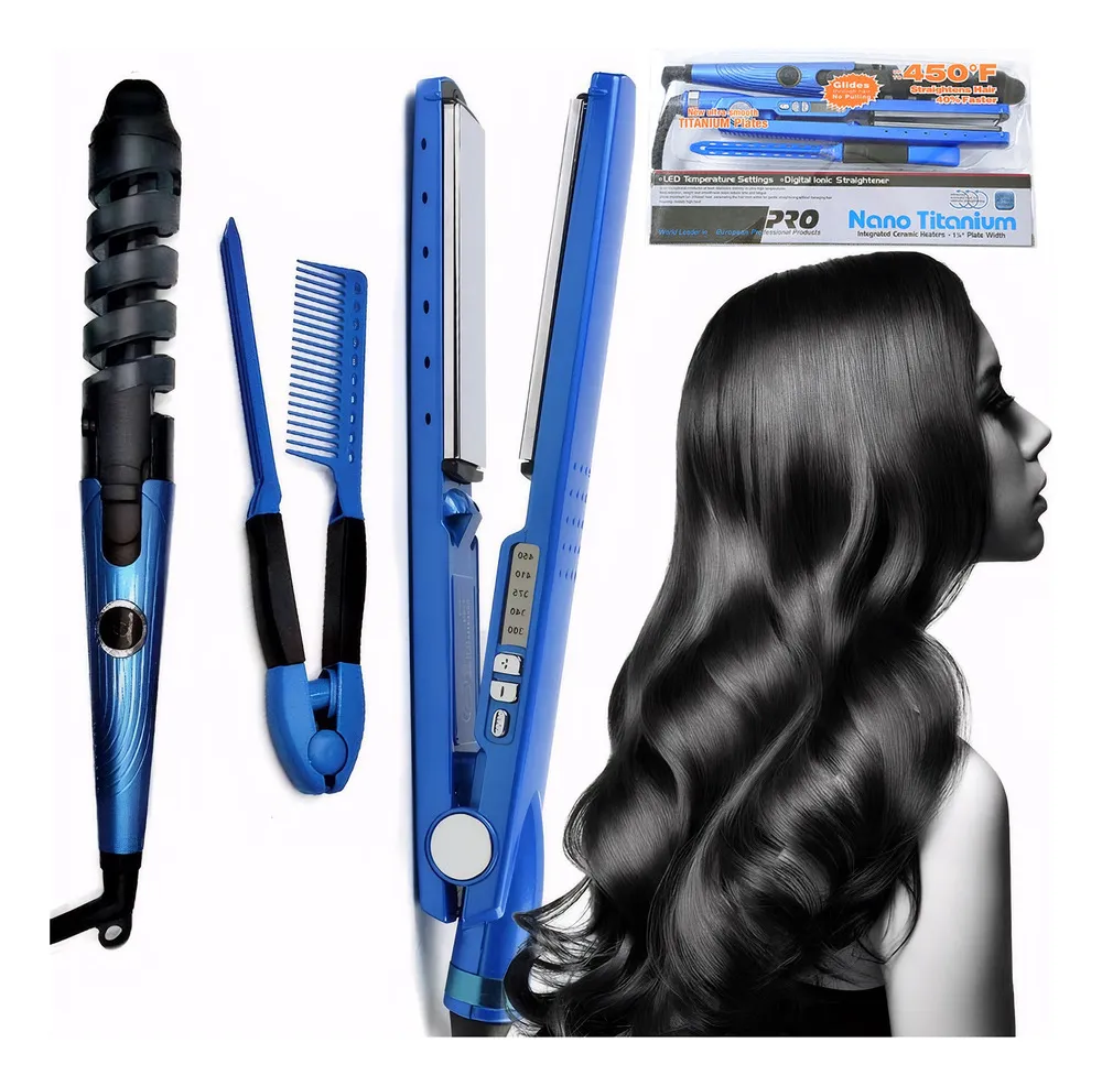 Este equipo reúne tres funciones en un solo cuerpo: plancha para obtener un alisado suave, rizador para ondas definidas y peine para dar volumen o acomodar el cabello. Su tecnología nano ayuda a distribuir el calor de manera uniforme, reduce el frizz y protege la fibra capilar, logrando un acabado más brillante y saludable.