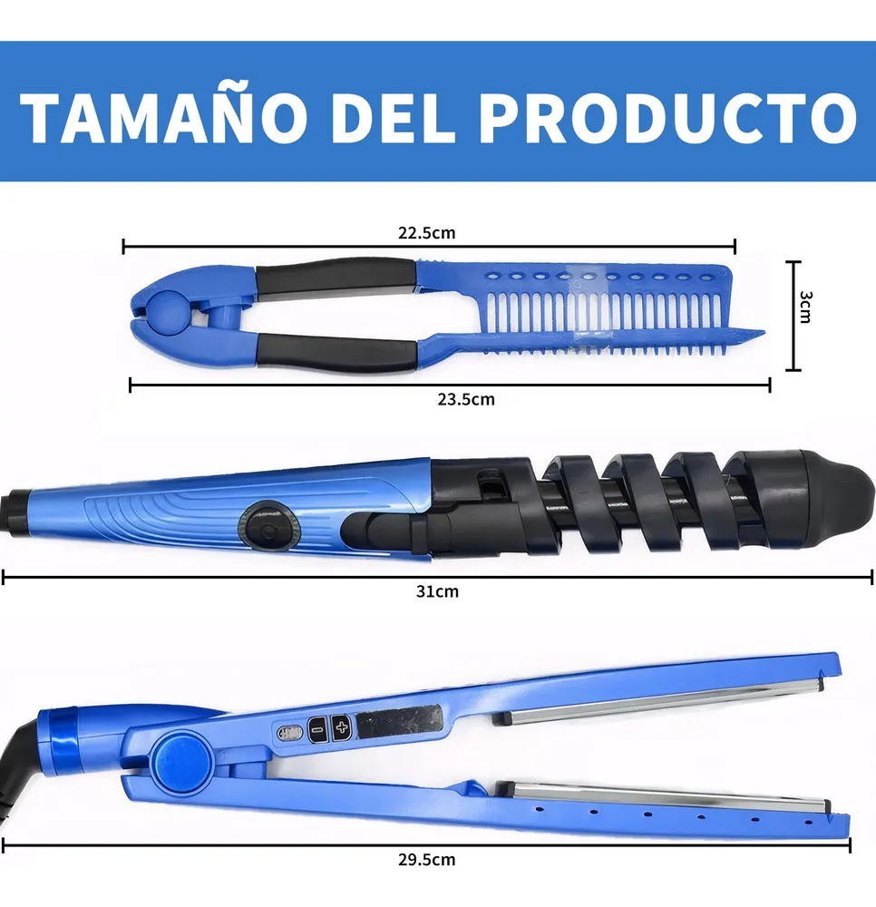Pensada para ofrecer una experiencia práctica, esta plancha 3 en 1 es liviana, fácil de manejar y perfecta para uso diario. Su forma ergonómica facilita crear diferentes estilos sin cansarte, mientras que su tamaño compacto te permite guardarla o llevarla contigo cuando la necesites.